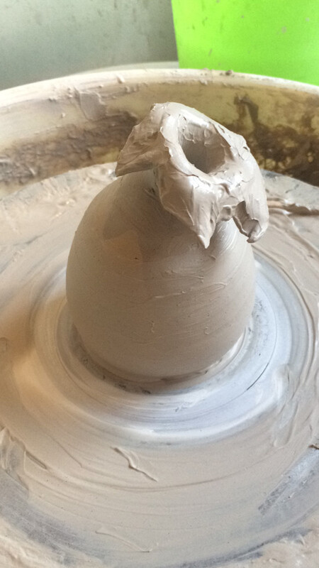 待他们结束,就轮到我们啦~ 每个C满E成员都已穿上“自在陶艺”的围裙,做好了衣服的保护工作…老师分给我们每人一块“大泥巴”,让我们观察片刻才动手制作。老师告诉我们:“先预想下自己的作品或者在架子上找个作品临摹,再看着我手上捧土的动作,捏土的方向,自行调节踏板的速度,慢慢地,往你想要的作品靠近……” 不只是做陶泥,其实做许多事情都是如此,面对一个陌生事情,不妨找个榜样,观察事情的“结构”,具体问题具体分析,融汇应对的方法。老师的话,给了我们很多启发。