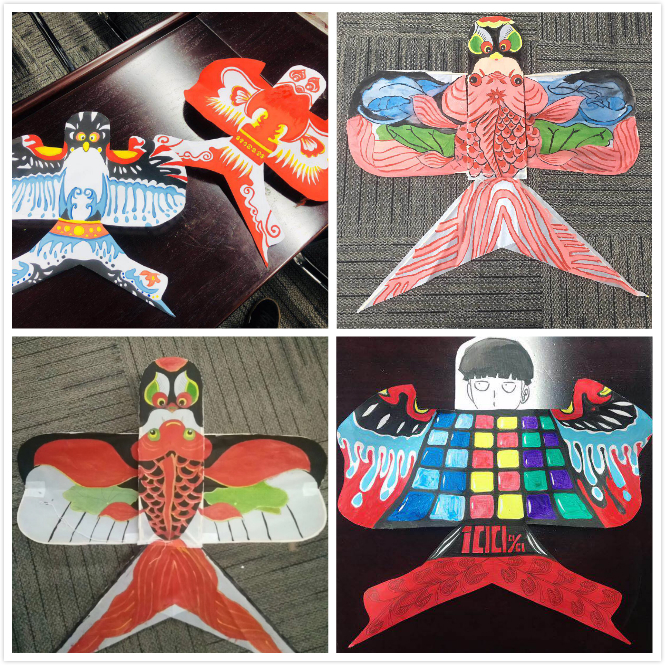 这不,书画社在四月的第一天,就组织了绘纸鸢的活动,小伙伴们聚集在一起,认真地在空白的风筝上描述着自己对春天的理解:有些充满着古色古香,有些是满满的中国风,有些是红红火火的味道,有些是带有现代化的元素......最后,一只只色彩斑斓的纸鸢就完工了。