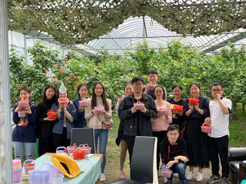 早上出发之前还下着毛毛细雨,但丝毫不影响我们采摘的心情。到了目的地,每个人在入口处领完篮子后进入了樱桃园。此时正是小樱桃收获的季节,走进樱桃园可以看到一颗颗树上挂满了一串串鲜红的“小灯笼”,犹如玛瑙般晶莹剔透。轻轻咬一口,清甜的汁水流露出来,甜中略带点酸,十分可口。樱桃还没长开的颜色是青色的,渐渐变成了淡红、大红,就像一张张嫩嫩的小红脸蛋,一碰就破,非常惹人喜爱。过了许久,大家吃饱了,也摘累了,便带着满满的成果先后钻出果园。这次采摘大赛不仅让我们体验了采摘的快乐,还能带上新鲜的樱桃去和家人一起去品尝酸酸甜甜的味道!