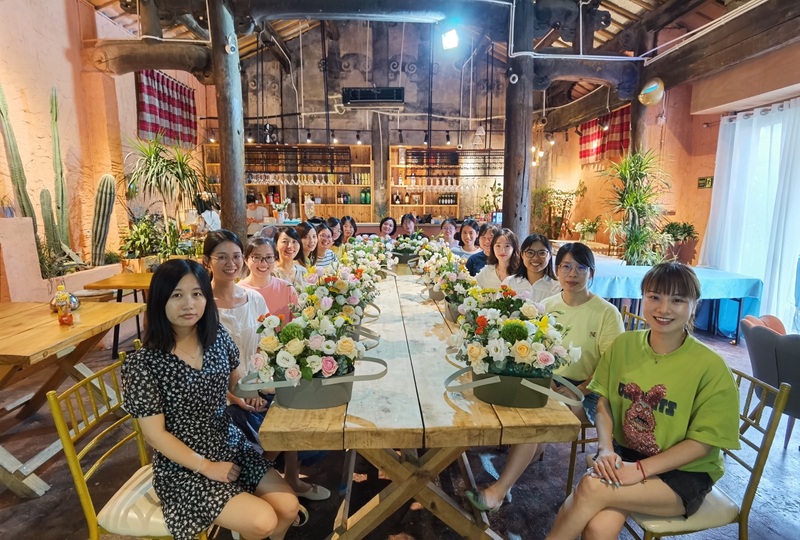七月里甚是难得的凉爽一日,大优讯财务部来到有“田园乡梦”之称的李祖村,领略了传统染色工艺扎染以及手工布鞋的独特魅力,品尝了传统制糖工艺梨膏糖,在这里感受时光岁月赋予它的韵味。然后开始了此次团建的重头戏——插花。在插花过程中,大家耐心地修剪、配色,互相帮助指导。活动结束,大家都拥有了属于自己性格特色的花篮,有热情奔放派,有沉静内敛派,也有自然生长派……