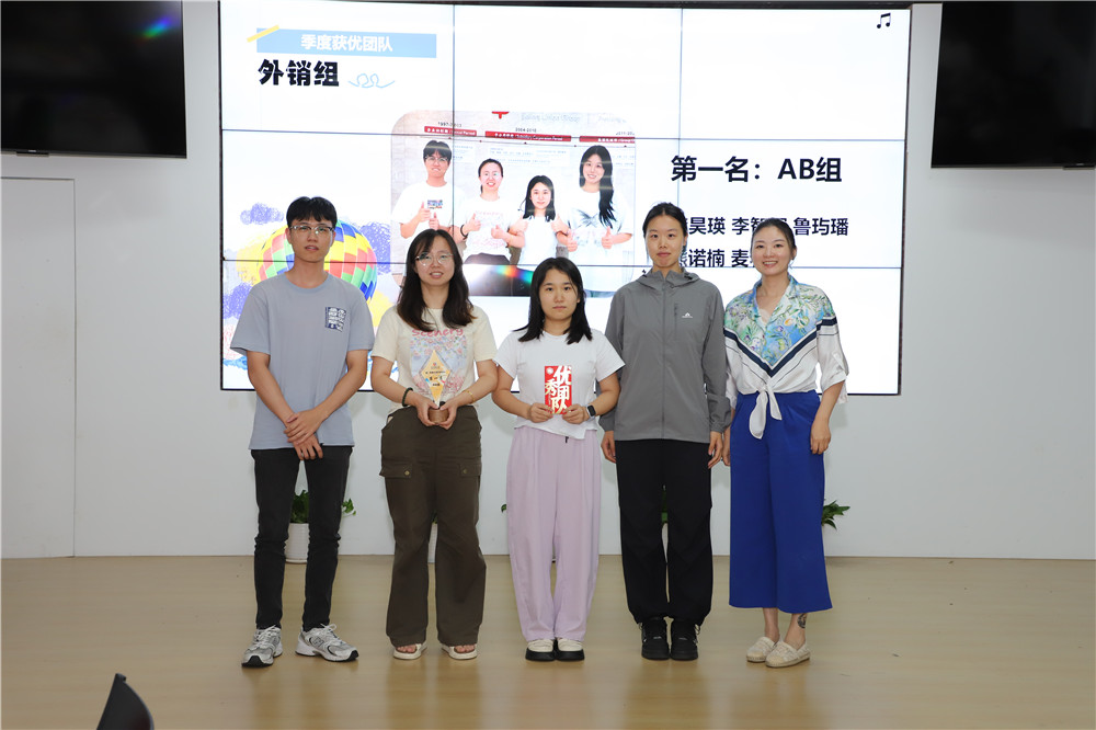 入场活动后,季度会正式开始。第二季度新人的自我介绍后,会议为月度获优、季度获优的个人及团体进行颁奖,并由两位优秀同事带来工作经验的分享。第三部分为集团奖项金苗奖的颁奖,表彰在实习期间展现出卓越成长力的实习生。最后是年中晋升提拔表彰,共有5位同事荣获晋升,在事业部全体热烈的掌声中共同见证领导为其颁发聘书,并由其中的优秀代表做了工作分享。