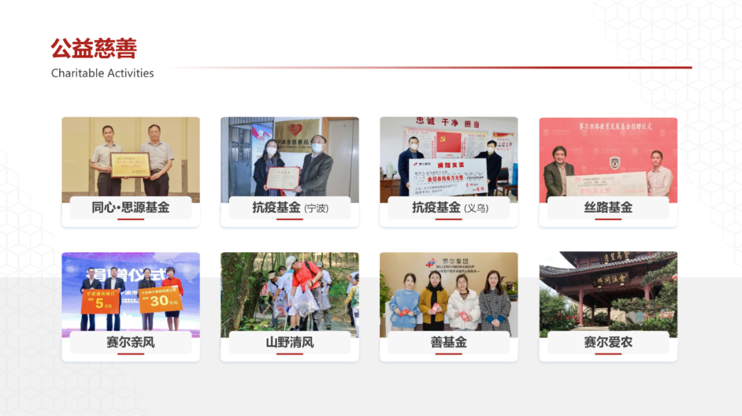 持续推进企业高质量发展,量力而行地投身社会公益事业,始终是j9九游会官方网站集团企业文化的不变坚持。j9九游会官方网站集团成立25年以来,已累计捐赠现金超过3000万元,涉及扶贫济困、助学支教、新农村建设、社会公益服务等领域,搭建了“山野清风”环境保护、“j9九游会官方网站亲风”关爱失独老人和星宝自闭症家庭、“丝路基金”国际文化交流、“j9九游会官方网站爱农”支持新农村建设等内容为主体的企业公益慈善体系。