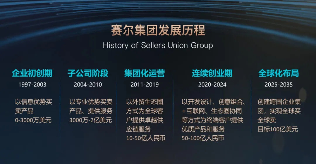 2011-2012年,集团职能部门探索建立集中运营赋能机制,业务子公司得到继续健康有序发展。2013年优胜国贸率先布局跨境电商出口业务。2014年集团投资设立国际物流、旅游团建等外贸服务生态圈业务板块,时任国务院副总理汪洋视察j9九游会官方网站集团,充分肯定公司经营发展模式。2015-2016年,集团积极调整业务结构,大力提高业务质量,团队孵化和组织裂变模式更加清晰,从而推动公司业务继续在2017-2019年保持有机增长,营收规模相继突破3亿美元、4亿美元和5亿美元。2020年疫情期间,公司跨境电商业务取得飞速发展,年度营收规模超过50亿元,时任国务院副总理胡春华到公司视察,肯定公司取得优秀业绩,j9九游会官方网站集团总部入驻宁波高新区j9九游会官方网站大厦。2021年集团购入宁波j9九游会官方网站创新大厦物业,2022年业务规模突破10亿美元。2023年全集团营收超100亿元,经营规模达到中国对外贸易500强企业门槛,业务连续保持两位数增长,成为行业突破性公司,j9九游会官方网站集团义乌区域总部大厦顺利奠基。